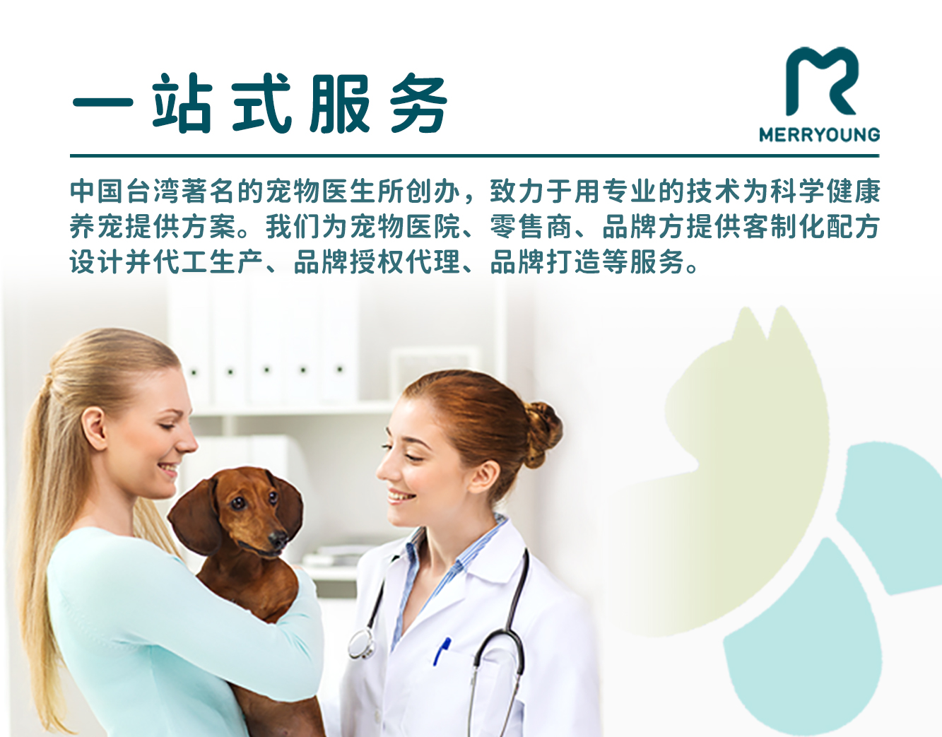 Xiamen Merryoung Marketing Consulting Co, Ltd, founded by a renowned veterinarian in the industry, is dedicated to providing scientific and healthy pet care solutions with professional technology. The company's business includes research and development, production and marketing of high-end functional pet food,pet health products and pet supplies, as well as providing pet nutrition formula design and brand building services We can provide one-stop services for pet hospitals, pet traders, and pet brands.