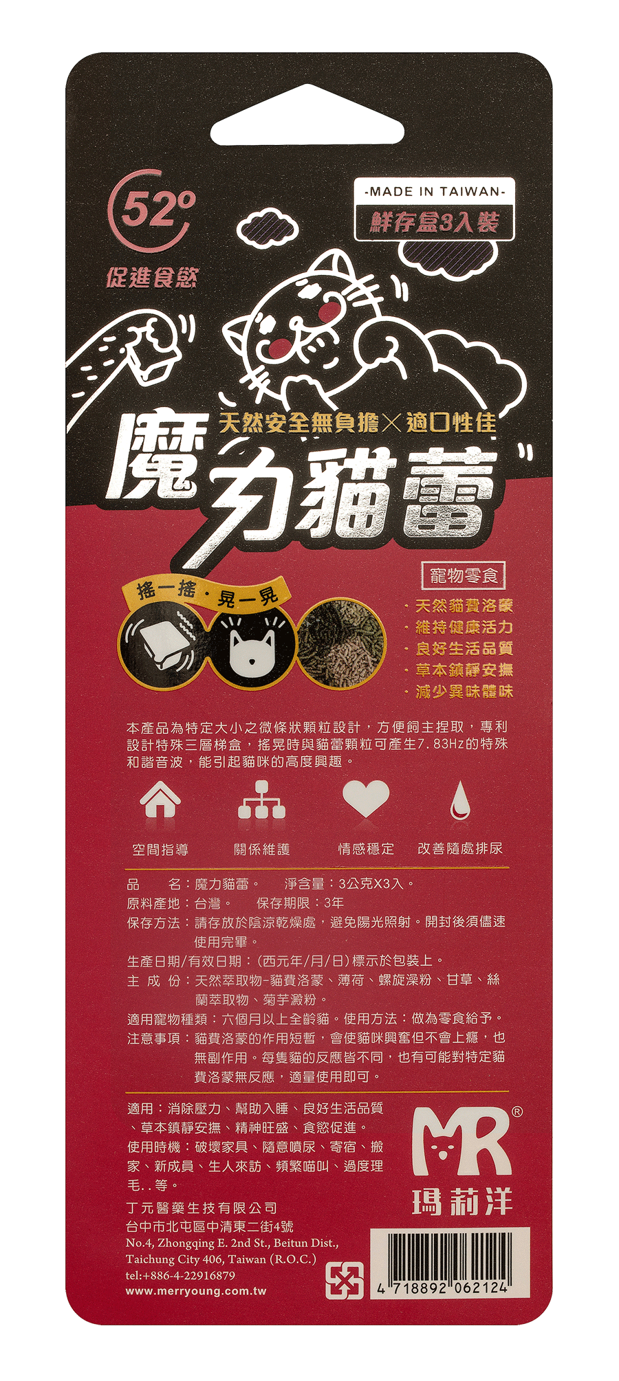 Unlike other brands of cat pheromones that can only be used in a certain place, 魔力貓蕾 uses a unique cat herb extraction technology to extract a high amount of natural extracted ingredients using a three-dimensional high pressure extractor with a unique extraction process.