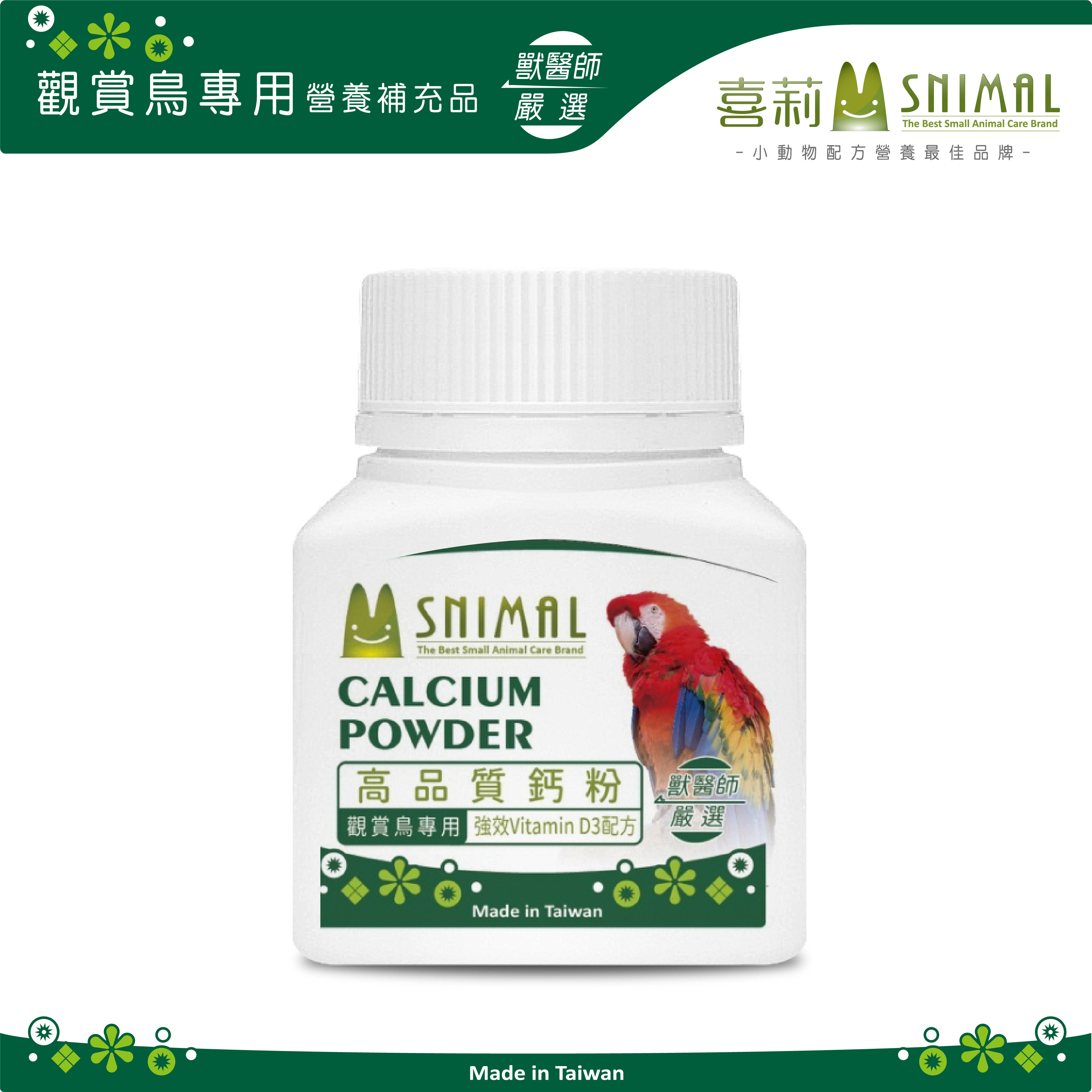 产品描述:补充鸟类骨骼成长所需的钙及磷。本产品适用于日常钙质补充及繁殖期、幼鸟成长期额外添加使用。